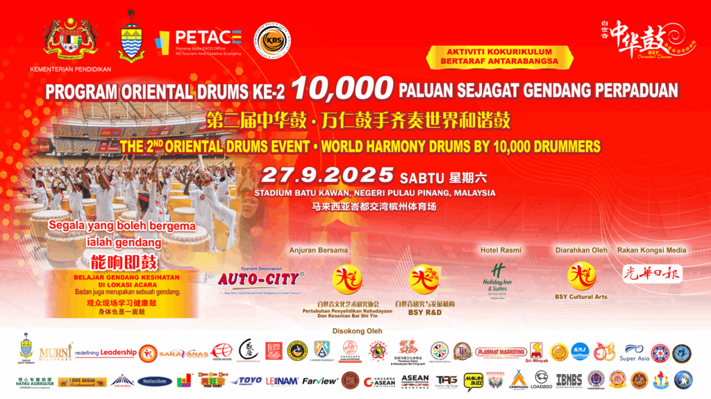 2025年9月27日,第二届中华鼓·万仁鼓手齐奏世界和谐鼓盛典在马来西亚峇都交湾槟州体育场盛大举行!